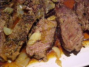Moist and flavorful, this roast will become a regular in your recipe rotation. Adding the garlic and onion toward the end of the cooking time ensures their flavor does not “cook out” over the long braising time. Mash the garlic and onion on top of the roast before slicing to enjoy their sweet, mellow goodness in every bite. Leftovers make wonderful sandwiches, too!